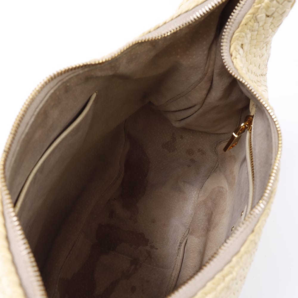 AB:(表面/汚れ、ヤケ 内側/汚れ ハンドル/汚れ、パニッシュヒビ、ほつれ 金具/スレ、打ち傷 におい/保管臭 保存袋/汚れ)